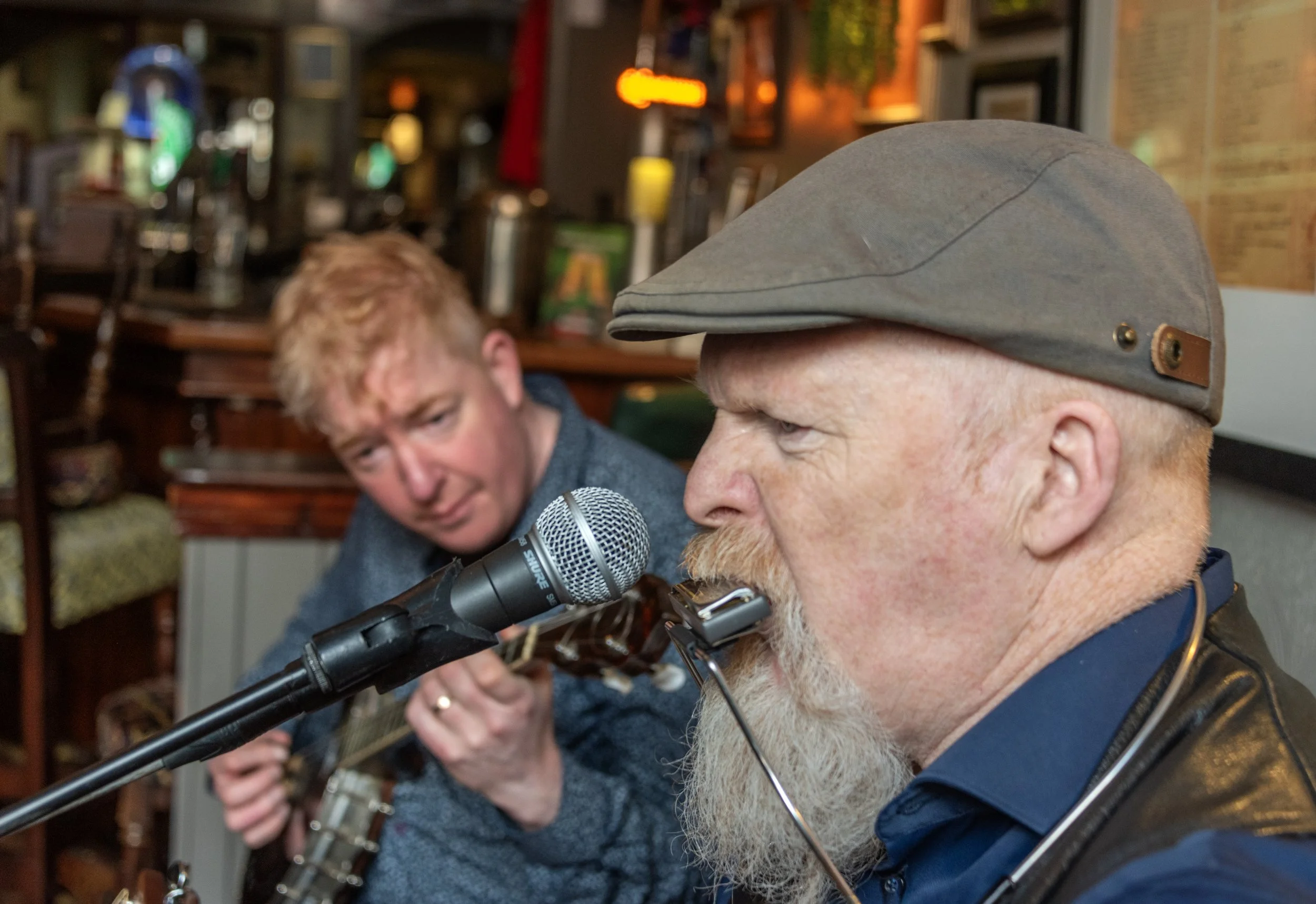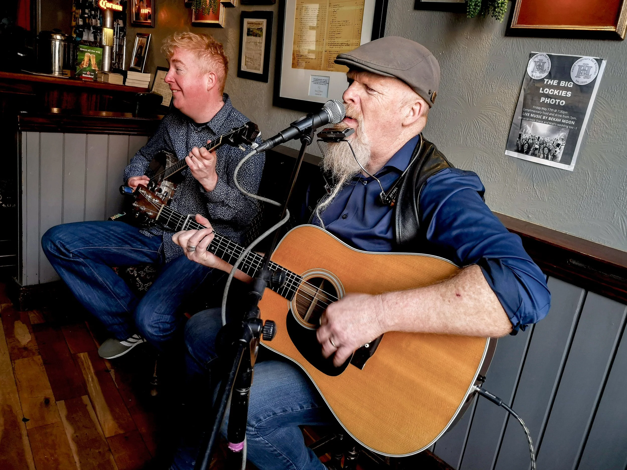We’re Brendan Melia and Brian Kelly—Irish musicians with a deep love for folk, trad, and ballads that come from years of playing everywhere from smoky pub corners to wedding barns to historic European stages.