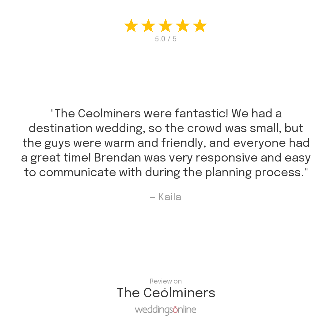 At The Ceólminers, we bring our authentic sound to your celebration—one that gets your guests clapping, singing, and raving about the night long after the last song fades out.